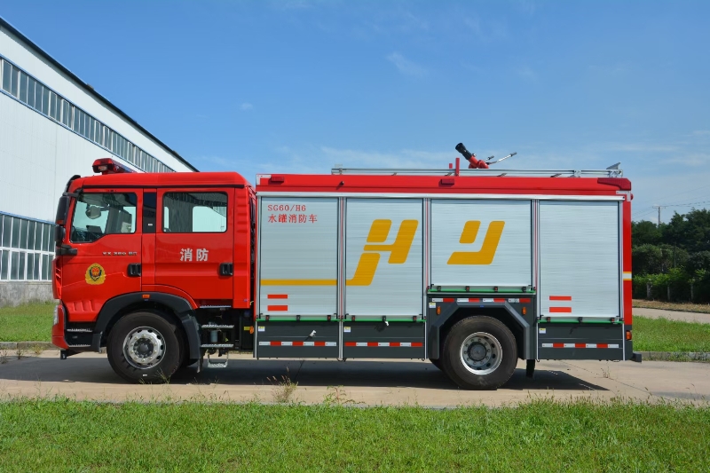 車(chē)輛底盤(pán)為豪沃ZZ5207TXFV471GF5底盤(pán),發(fā)動(dòng)機(jī)型號(hào)MC07H.35-60,功率:257kw,國(guó)六排放標(biāo)準(zhǔn),軸距4700mm,罐體材質(zhì):采有耐低溫高分子化合物PP;容罐容量:水6000kg,消防泵為上海雄真CB10/60-XZ;消防炮為PS50W。
