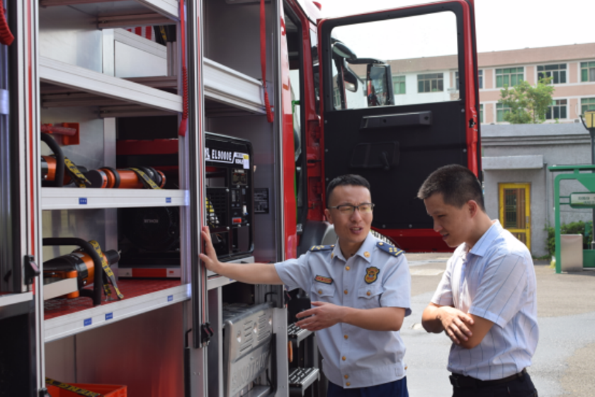 演示結(jié)束后,鎮(zhèn)政府各級(jí)領(lǐng)導(dǎo)及平陽(yáng)縣大隊(duì)領(lǐng)導(dǎo)來到新購(gòu)的舉升搶險(xiǎn)主戰(zhàn)消防車前,詳 細(xì)參觀、了解消防車輛技術(shù)性能,觀摩了新型消防車輛器材的展示和車輛各種功能操作 演示,并對(duì)我公司研制的新產(chǎn)品進(jìn)行了點(diǎn)評(píng),給予了高度的贊許,稱此款車型最大化的 滿足了老舊小區(qū)、狹窄街道、城鄉(xiāng)低建筑物等滅火救援工作的需要。